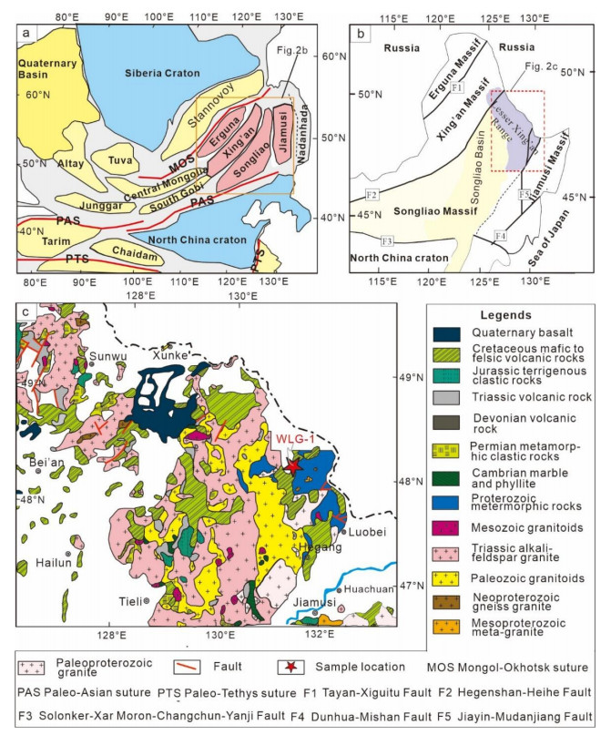 Wang, Z. W., Xu, W. L., Pei, F. P., et al., 2016. Geochronology and Geochemistry of Early Paleozoic Igneous Rocks of the Lesser Xing'an Range, NE China: Implications for the Tectonic Evolution of the Eastern Central Asian Orogenic Belt. Lithos, 261: 144–163. https://doi.org/10.1016/j.lithos.2015.11.006 |