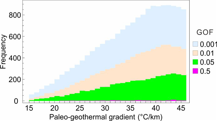 The paleo-geothermal gradient is a crucial parameter for converting the thermal history to the exhumation history. However, the precise estimation of this parameter has been a challenge. This paper presents a simple two-step method to model the paleo-geothermal gradient using low-temperature thermochronology. (1) It uses the Monte Carlo approach to generate thermal histories in a vertical section randomly and calculates the entire thermal history within the goodness-of-fit thresholds based on different paleo-geothermal gradients. (2) It selects the optimum paleo-geothermal gradient by comparing the entire thermal history within different goodness-of-fit thresholds. We validated the method with apatite (U-Th)/He and fission track data collected from two drill cores in the Haiyuan-Liupanshan region. The result revealed that the best-fit paleo-geothermal gradient was ~42 ℃/km during the Early Cretaceous–Miocene and has decreased rapidly to 20 ℃/km since ~10 Ma. The crust thickening in the study area may explain the rapid reduction in the paleo-geothermal gradient since ~10 Ma. Our results are consistent with earlier studies in the region, suggesting that our simple and more intuitive approach provides an alternative method for paleo-geothermal gradient modeling.