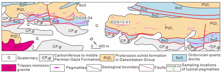 The Edanggang area is characterized by small-scale Li-Be-bearing granitic pegmatites in the Quanji Massif, northwest China. The genesis of these Li-Be-bearing pegmatites remains unresolved. In this study, we use tourmalines as an indicator to constrain the genesis of them.
