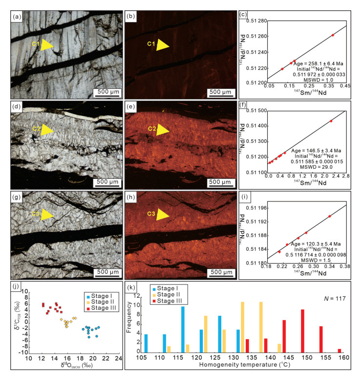 Zhang, C., Wen, H. G., Wang, X., et al., 2024. Formational Stages of Natural Fractures Revealed by U-Pb Dating and C-O-Sr-Nd Isotopes of Dolomites in the Ediacaran Dengying Formation, Sichuan Basin, Southwest China. Geological Society of America Bulletin, 136(11/12): 4671–4688. https://doi.org/10.1130/b37360.1 |